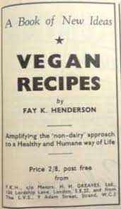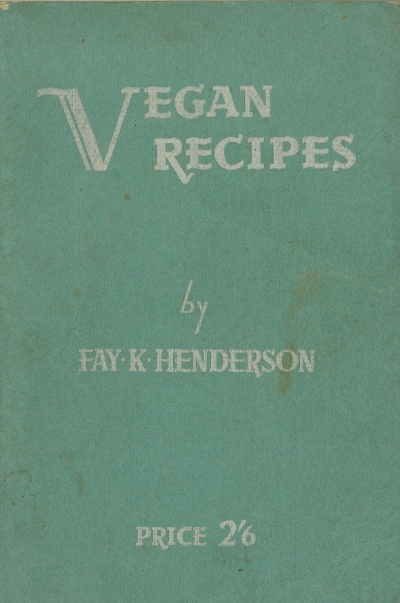 Fay K. Henderson, Vegan Recipes (London: H. H. Greaves, 1946) — among the earliest post-war vegan cookbooks.